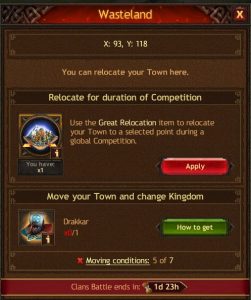 I used this picture because it shows the claim button. If you see this you want to claim it. You need the “Great Relocation” to get to the enemy kingdom.